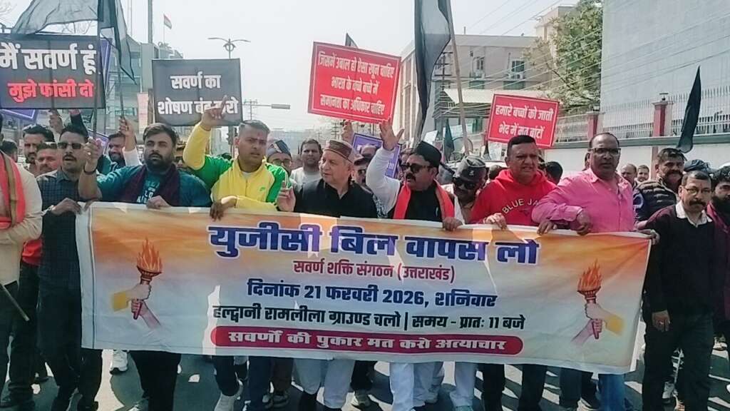 UGC बिल के विरोध में हल्द्वानी में सड़कों पर उतरा सवर्ण शक्ति संगठन