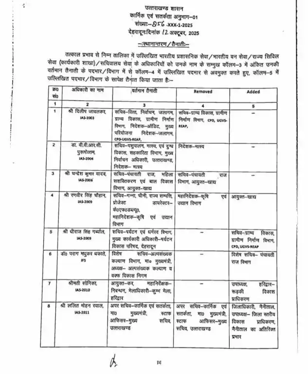 वहीं, हल्द्वानी नगर निगम के नगर आयुक्त परितोष वर्मा को भी नई जिम्मेदारी सौंपी गई है। शासन ने इस संबंध में आधिकारिक आदेश जारी कर दिए हैं।